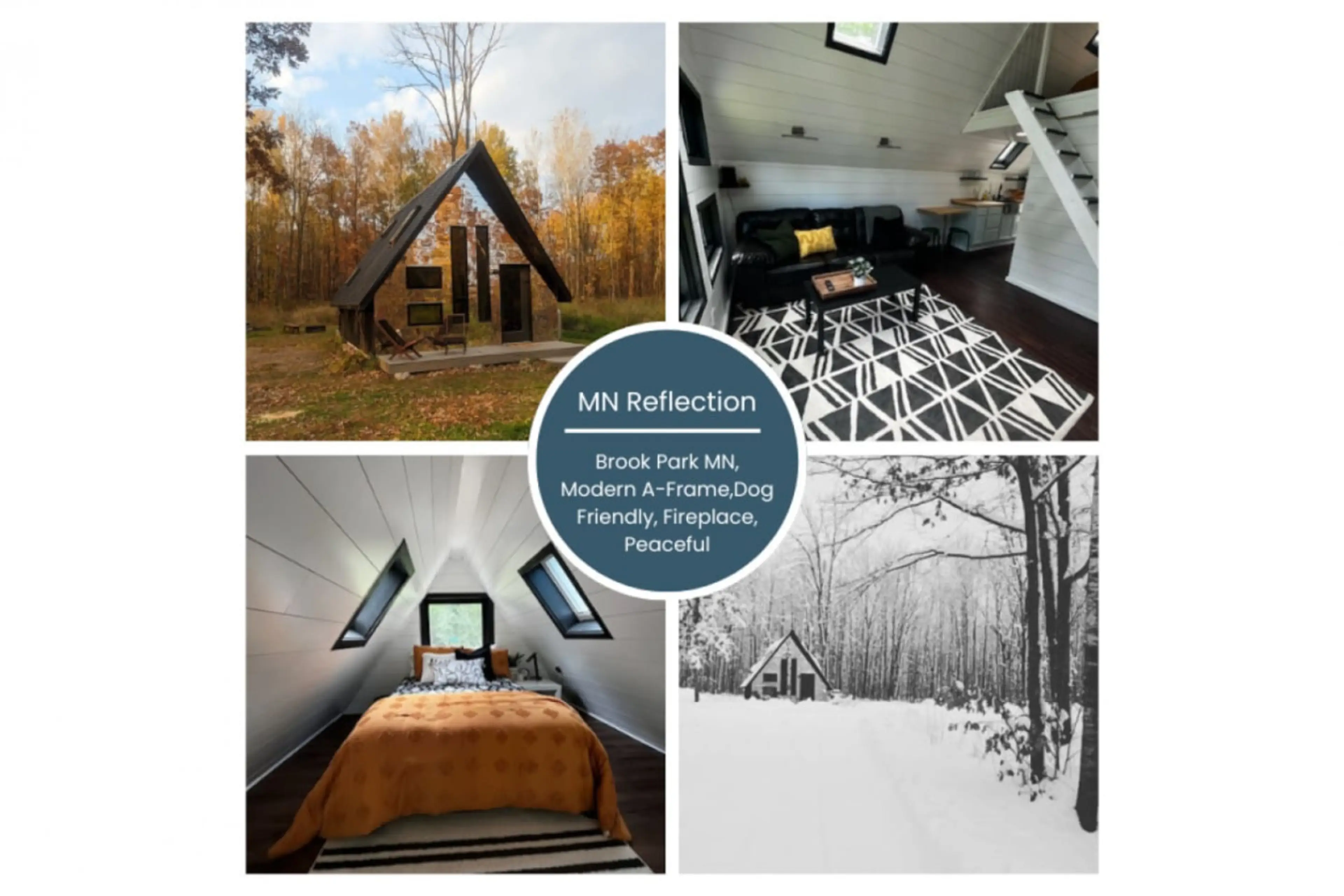 Escape to a unique, modern A-frame cabin with a stunning mirrored exterior, nestled on four private wooded acres. This tranquil, pet-friendly retreat is perfect for 2-4 guests seeking relaxation and nature. Features include a full kitchen, gas fireplace, and a cozy sleeping loft with skylights. Unwi...